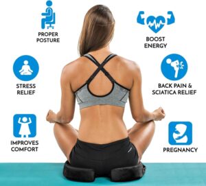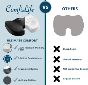 ComfiLife Coccyx Seat Cushion is an exceptional multipurpose product if you are looking for a natural solution for back pain and sciatica relief or just everyday comfort while sitting. It helps relieve most back pain by reducing pressure on the tailbone with its cut-out rear. The ergonomic contour design further promotes proper spinal alignment and a healthy posture.